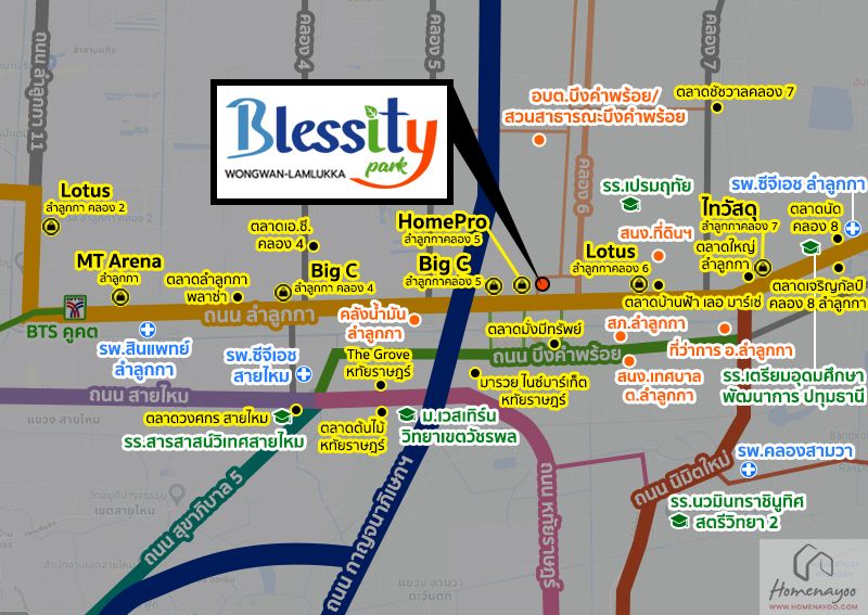 | ชื่อโครงการ | เบล็สซิตี้ พาร์ค วงแหวน-ลำลูกกา Blessity Park Wongwaen-Lumlukka |