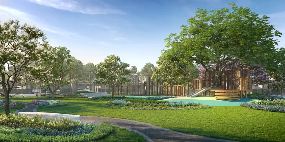 ภาพและบรรยากาศจำลองสวนสาธารณะภายในโครงการ