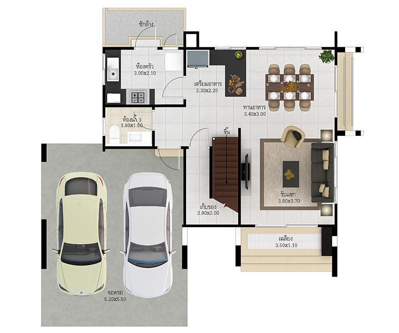 1 ส่วนเตรียมอาหาร ที่จอดรถ 2 คัน