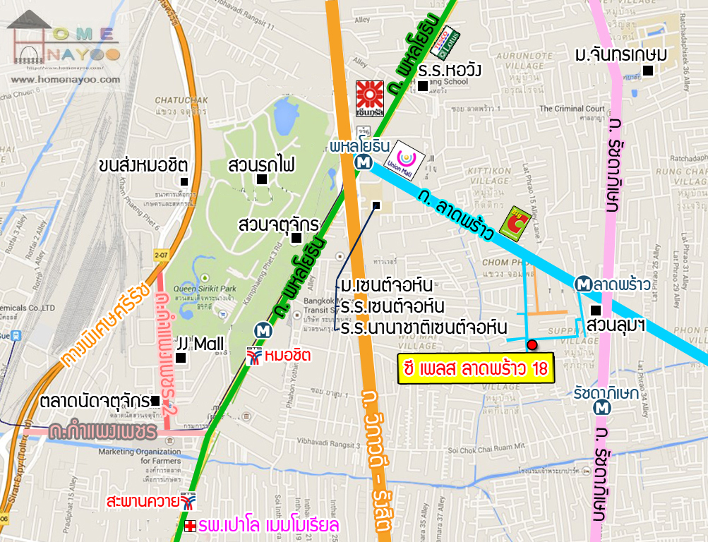 | สถานที่สำคัญใกล้เคียง | 1. โฮมโปร 2. เซ็นทรัล ลาดพร้าว 3. ศาลอาญา 4. SCB สำนักงานใหญ่ 5. เมเจอร์รัชโยธิน 6. สวนจตุจักร 7. เอสพลานาด |