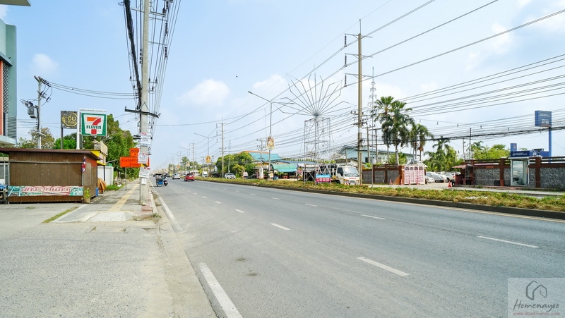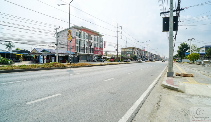 ตัวโครงการตั้งอยู่ติดถนนปทุมธานี-สามโคกเลยค่ะ เป็นถนนใหญ่ 3 เลน รถขับได้สะดวกสบาย มีเกาะกลางถนนคั่นระหว่างฝั่งตรงข้าม