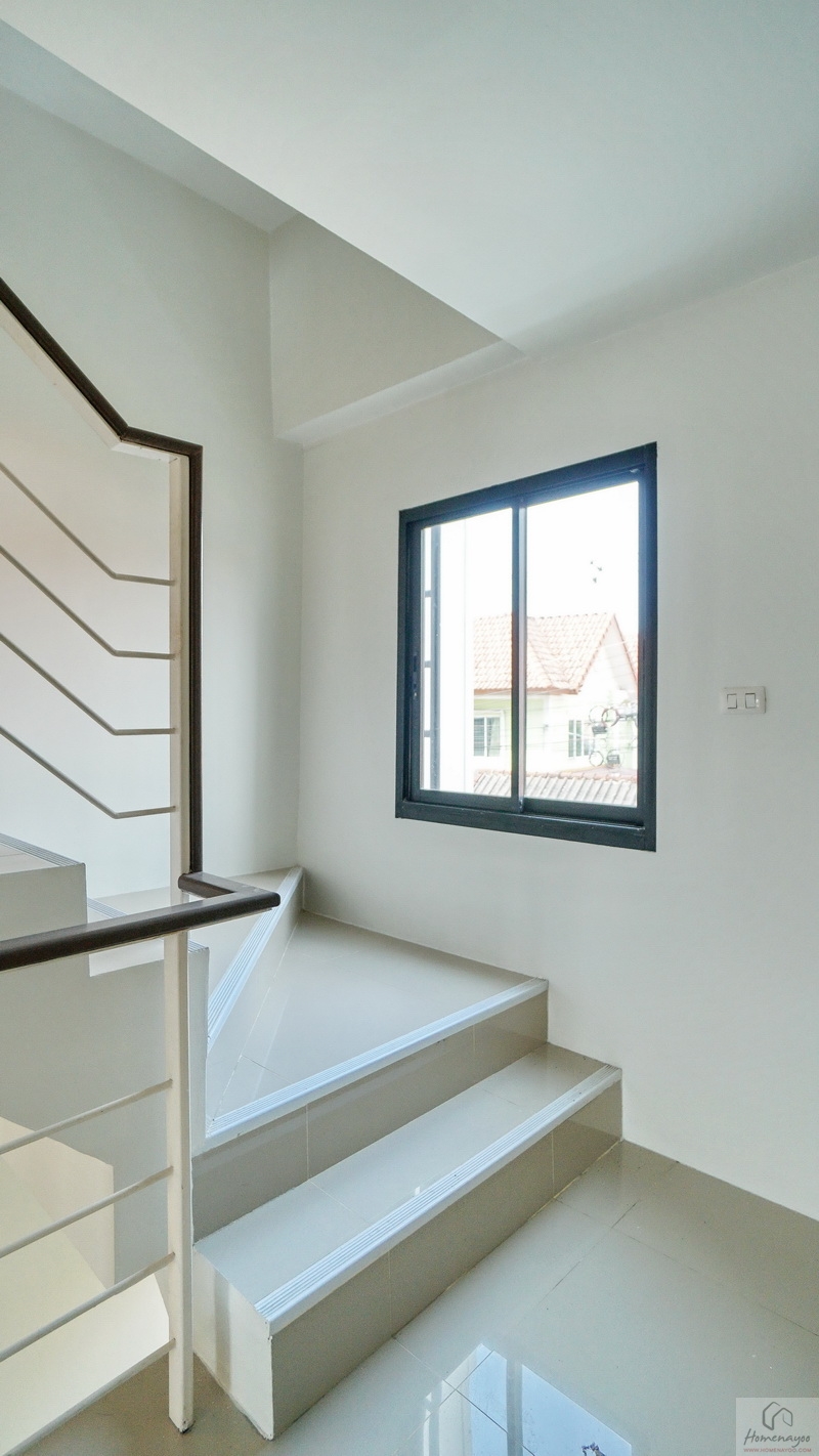 บริเวณโถงบันไดชั้น 2 มีหน้าต่างกระจกบานเลื่อนขนาดใหญ่ให้ 1 ชุด เปิดออกไปด้านนอกสามารถเหยียบช่วงคานแล้วปีนบันไดขึ้นลงฝั่งหลังอาคารได้ สะดวกมากสำหรับช่างที่มาซ่อมบำรุงงานต่าง ๆ