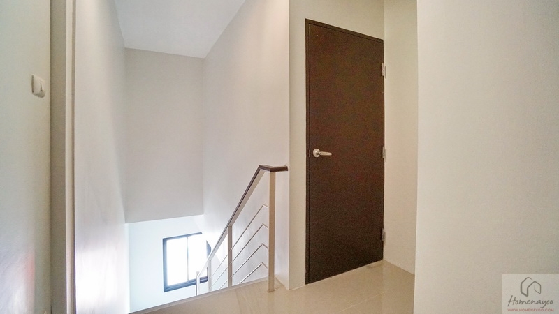 ออกมาดูบริเวณโถงทางเดินที่จะเชื่อมขึ้นไปยังชั้น 4 กันต่อค่ะ บริเวณนี้มีพื้นที่เหลือค่อนข้างกว้างให้จัดเป็นมุมใช้งานได้อีก จะวางโซฟานั่งเล่นหรือวางตู้โชว์ก็ลงตัว