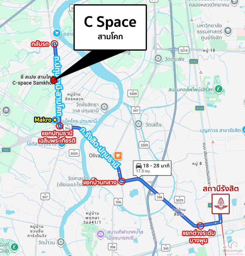 ขับตรงต่อไปบนถนนปทุมธานี-สามโคก ผ่าน Makro ปทุมธานี