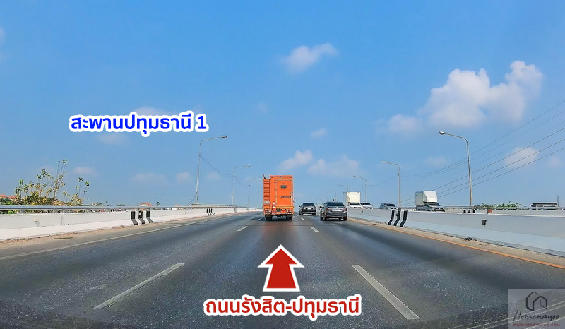 ขับตรงต่อเรื่อย ๆ ขึ้นสะพานปทุมธานี 1 ไปได้เลย