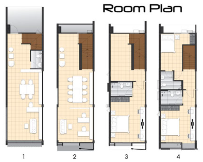 แปลนอาคารชั้น 4 : ฝั่งหน้าอาคารคือห้องนอน 2 ส่วนฝั่งด้านหลังจะเป็นห้องนอน 3 ทุกห้องนอนมีห้องน้ำในตัวเพิ่มความสะดวกเป็นส่วนตัวให้กับสมาชิกได้ดี Space ใช้งานกว้างพอ ๆ กัน จัดฟังก์ชันและวางเฟอร์นิเจอร์ได้อย่างครบครัน