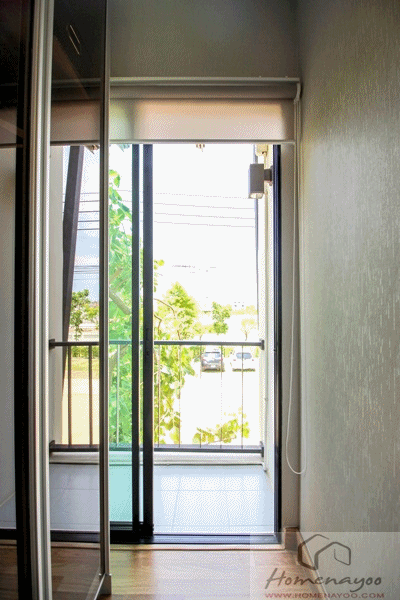 พื้นที่ระเบียงขนาดย่อม สามารถตากผ้าหรือเดินออกไปชมวิวได้ แต่คงไม่สามารถนั่งชิลๆได้นะคะ