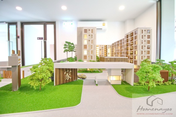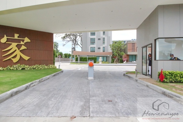 ทางเข้าโครงการด้านซ้ายมีตัวอักษรภาษาญี่ปุ่น ที่มีความหมายแปลว่า “บ้าน”