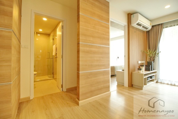 เข้ามาตามทางเดินเจอกับทางแยกไปยังห้องนอน 2 ห้องซ้ายขวาและห้องน้ำตรงกลาง