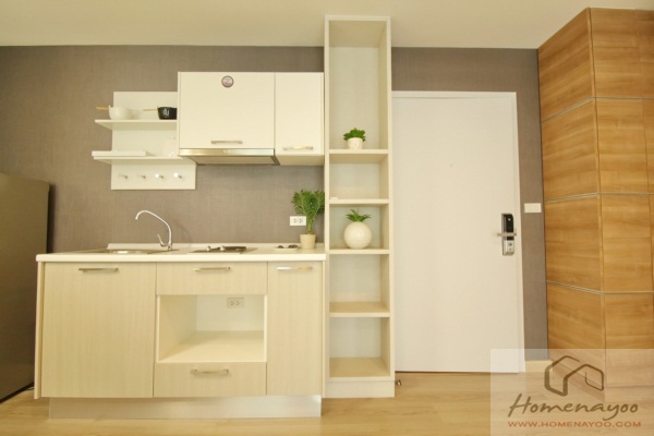 มองย้อนกลับไปยังประตูทางเข้า โครงการบิลท์ให้ดูแนวตุ้เก็บของเป็นตัวอย่างพร้อมเว้นช่องสำหรับวางตู้เย็น