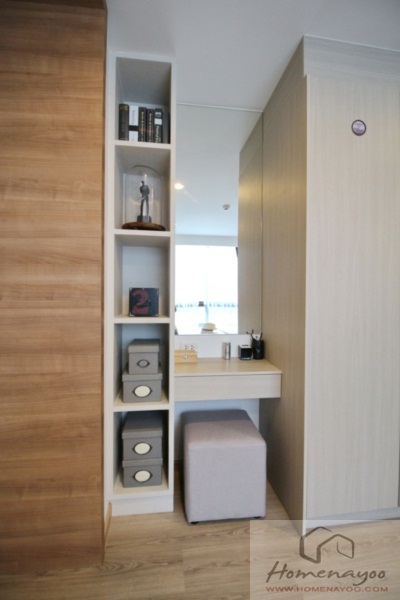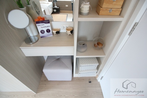 ผนังอีกด้านของห้องที่อยุ่ฝั่งปลายเตียงบิลท์เป็นตู้เสื้อผ้าและโต๊ะเครื่องแป้ง