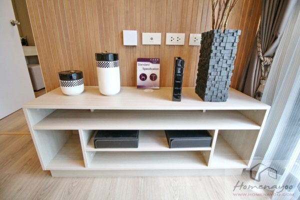 สำหรับชั้นวางทีวีนั้นมีให้ทั้งห้องนั่งเล่นและห้องนอนแยกกันคนละจุดเลยครับ