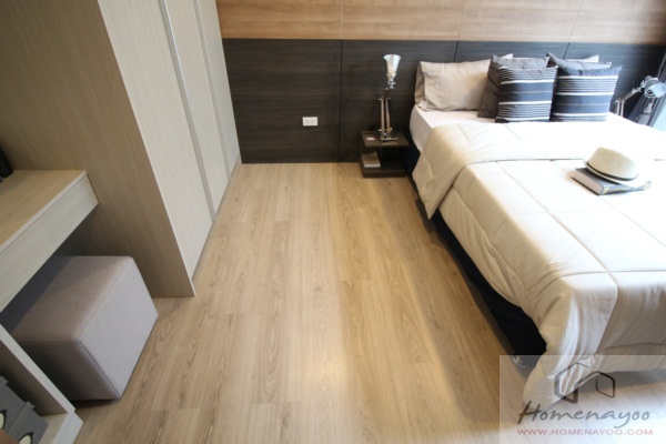 ห้องนอนผนังตกแต่งด้วยลายไม้