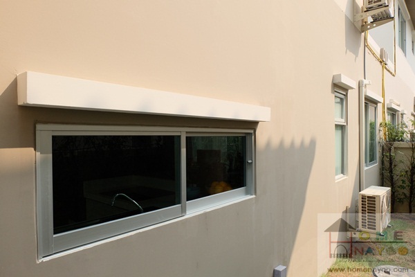 หน้าต่างบานใหญ่ฝั่งหน้าบ้าน เป็นบานเลื่อนอลูมิเนียม
