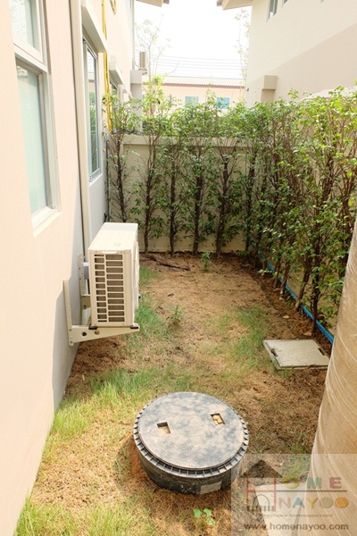 สวนด้านหน้าบ้านทางโครงการมีจัดให้ แต่ไม่เยอะเท่านี้นะครับ หลักๆคือมีไม้ใหญ่ 1 ต้นและไม้พุ่มบริเวณรั้วพร้อมปูหญ้ารอบๆบ้าน