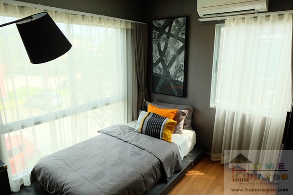 วางเตียงไซส์ 3.5 ฟุต บนเฟอร์นิเจอร์บิลท์อิน ซึ่งไม่ได้มีให้นะครับ ทางโครงการทำเป็นตัวอย่างให้ดู