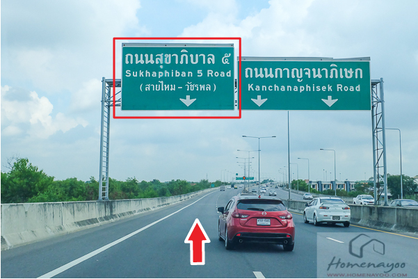 จากนั้นจะเจอป้ายทางลงทางด่วนไปถนนสุขาภิบาล 5