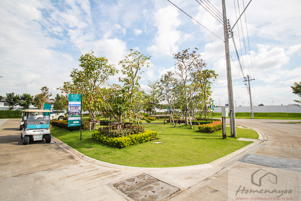 ทางเข้า-ออกโครงการจะแยกกันซ้ายและขวา มีเกาะตรงกลาง