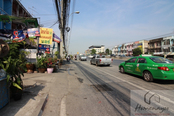 ตรงไปข้างหน้าก็จะเห็นทั้งโรงงานและตึกแถวเรียงรายกันไป ฝั่งตรงข้ามจะเห็นโรงพยาบาลจุฬารัตน์ อินเตอร์ 3 อยู่ไกลๆ