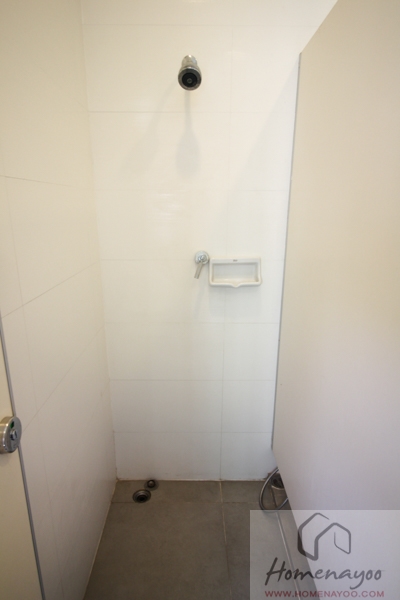 ที่ผนังฝั่งตรงข้ามกับห้องน้ำจะมีประตูบานเลื่อนออกไปสู่พื้นที่ระเบียงเหมือนกัน
