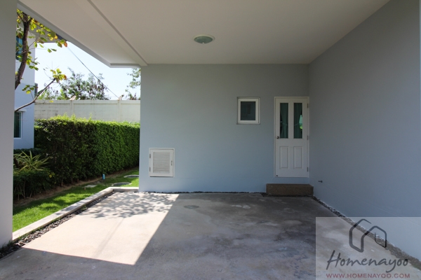ส่วนของเฉลียงทางเข้าบ้านก็เช่นกัน แต่จะมีพื้นเฉลียงที่กว้างกว่า กว้างถึง 1.1 เมตร