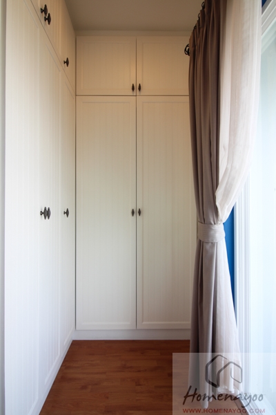 ตู้เสื้อผ้าที่วางได้มีขนาดใหญ่พอสมควรเลยค่ะ จัดเก็บเสื้อผ้าได้อย่างเพียงพอแน่นอน ที่ฝั่งขวาของตู้จะสามารถวางโต๊ะเครื่องแป้งตัวเล็กๆได้อีกตัวนึง