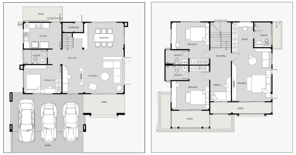 แปลนบ้านชั้น 1 | แปลนบ้านชั้น 2