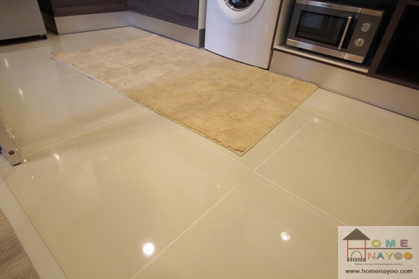 ห้องครัวปูพื้นกระเบื้องลามิเนต ขนาด 60 x 60 ซม. สะดวกต่อการทำความสะอาด