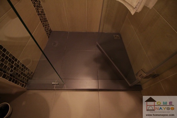 พื้นที่อาบน้ำของห้องนี้ ประมาณ 90 x 120 ซม. ใหญ่กว่าห้องน้ำเล็กนิดหน่อย