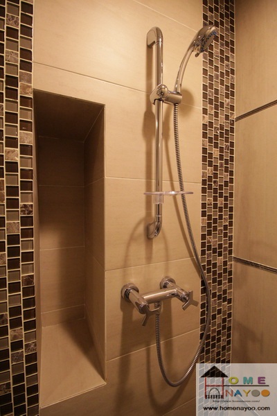 ฝักบัวแบบ Handshower พร้อมช่องสำหรับวางของด้านข้าง เหมือนห้องที่แล้วค่ะ
