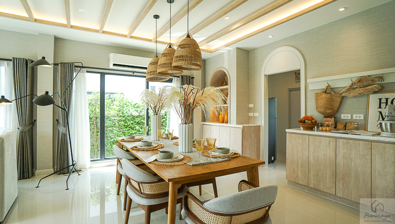 ถัดไปเป็นส่วนรับประทานอาหาร พื้นที่เปิดโล่งเชื่อมต่อกัน