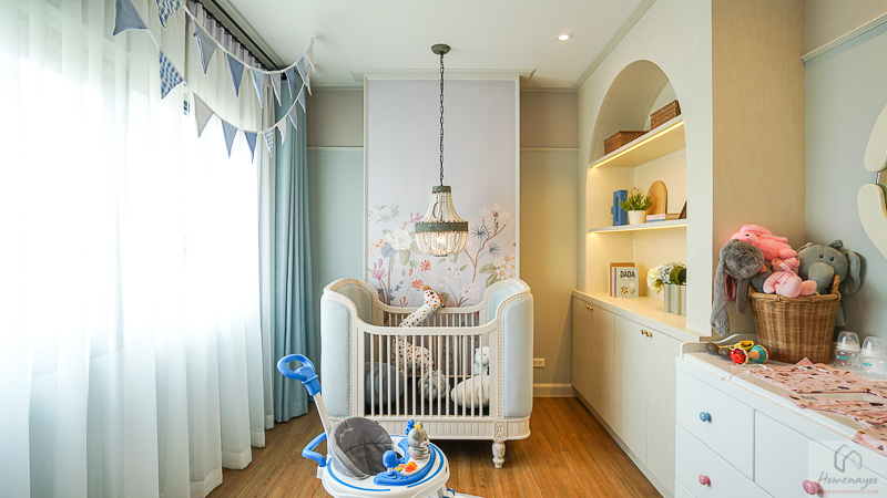 บ้านตัวอย่างตกแต่งเป็นห้องนอนเด็กเล็กมาให้ดูครับ ในห้องนอนมีช่องแสงขนาดใหญ่เป็นหน้าต่างบานเลื่อนเปิดระบายอากาศได้