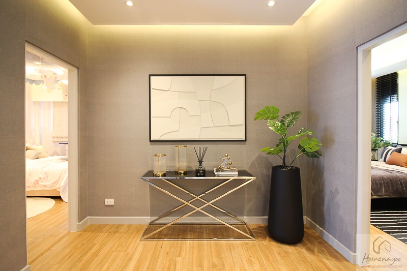 บนชั้น 2 ประกอบด้วยห้องนอนทั้งหมด 3 ห้อง และห้องนั่งเล่นอีก 1 ห้อง ซึ่งโถงทางเดินตรงกลางนี้ก็มีความกว้างพอสมควร ให้ความรู้สึกที่โปร่ง จัดให้เป็นมุมนั่งเล่นหรือวาง Console สำหรับวางของตกแต่งสวย ๆ ได้ ช่วยสร้างบรรยากาศได้ดี