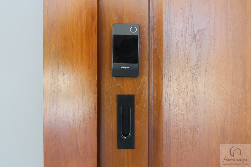 ด้านในมีทางเข้าบ้านรองเพื่อความสะดวกสบายเวลาฝนตก หรือเวลาขนของเข้าบ้าน ประตูใช้บานเปิด HDF ทำลายไม้ติด Digital Door Lock ของ Life Smart