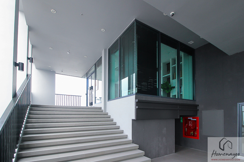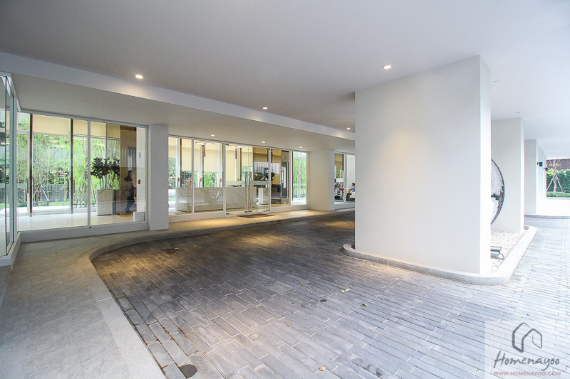 ติดกับบ่อน้ำและสวนหย่อมจะมีประตูทางเข้าอาคาร สามารถเดินไปยังโถงลิฟต์และ Lobby ได้