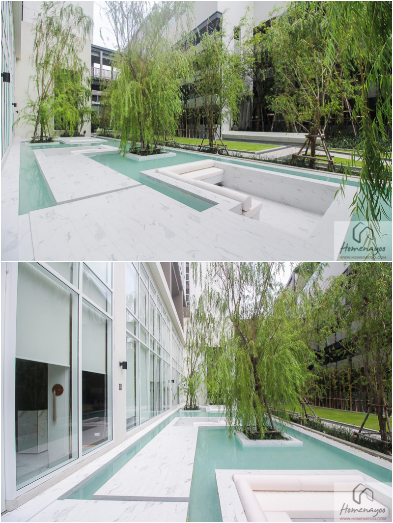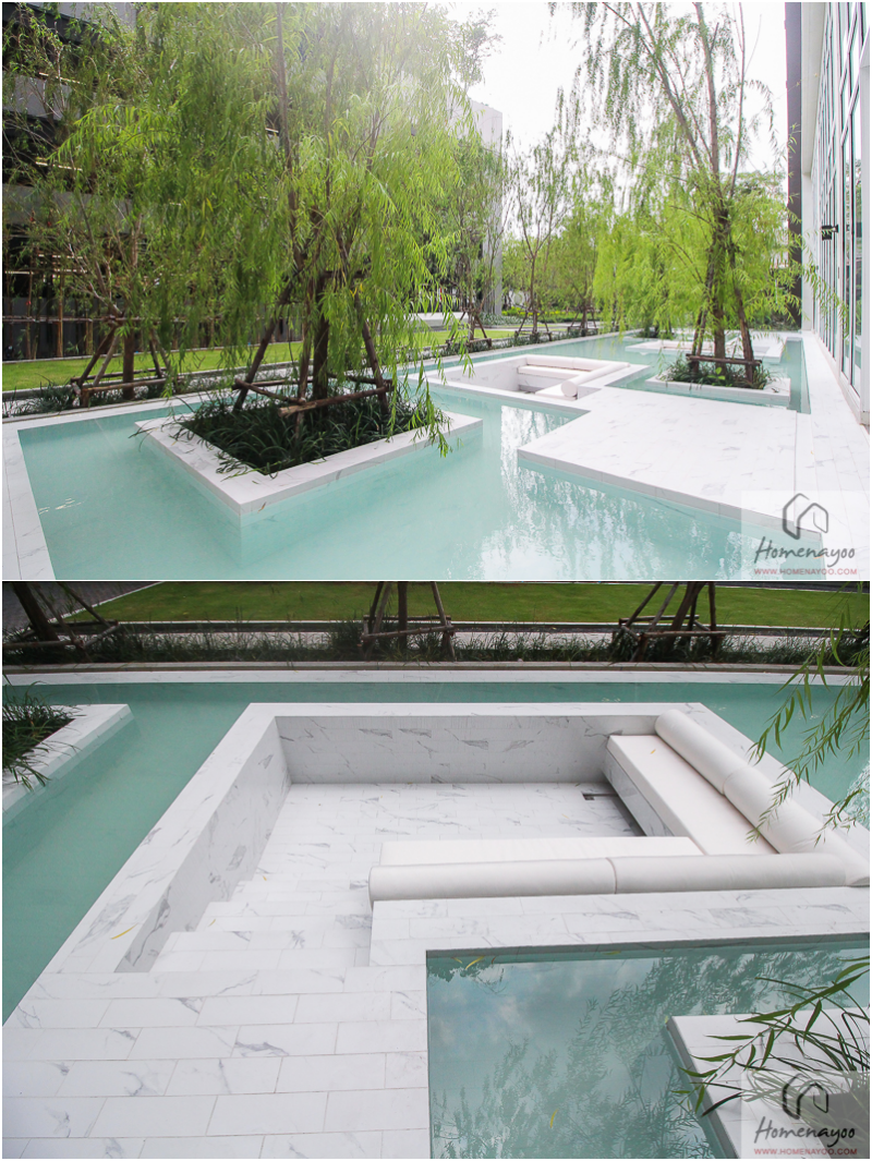 ติดกับสวนหย่อมจะมีบ่อน้ำ พร้อม Sunken Seat ซึ่งจะมีต้นไม้กั้นเหมือนเป็นม่านต้นไม้แบ่งพื้นที่ และบังสายตาจากส่วน Lobby