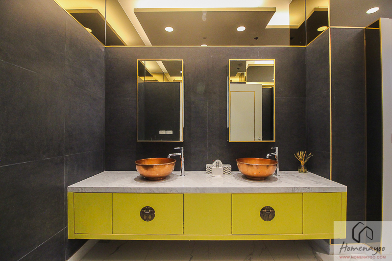 สุขภัณฑ์ที่ได้จะใช้ของ Cotto และ Prema เป็นหลัก ตัวอ่างล้างมือได้เป็นอ่างทรงสี่เหลี่ยม Lavenz พร้อมก๊อกน้ำ Prema ขนาดอ่างค่อนข้างกว้าง มีพื้นที่วางของเหนืออ่างนิดหน่อย