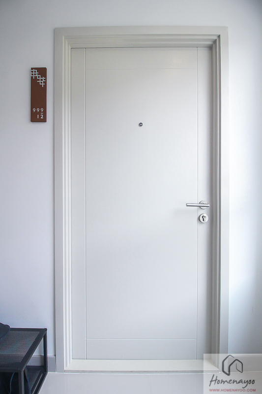 เรามาดูห้องน้ำกันก่อนค่ะ ประตูได้เป็นบานทึบสีขาว
