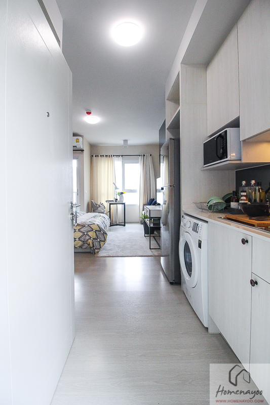 ภาพรวมภายในห้อง Studio จริงๆคือเป็นห้องที่มีพื้นที่ใช้สอยไม่เยอะมากนะ แต่เค้าจัดแปลนออกมาได้ดูโล่งพอสมควรเลย แล้วฟังก์ชั่นต่างๆก็จัดมาได้ครบดี อยู่คนเดียวได้สบายๆค่ะ