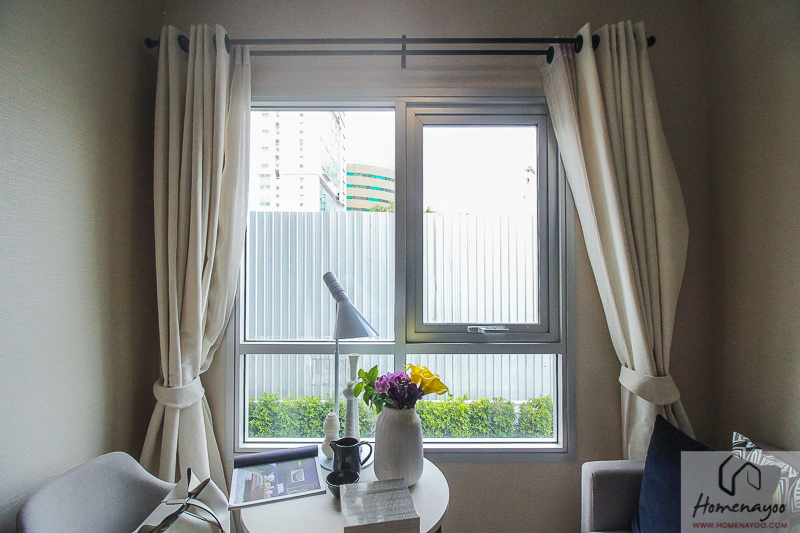 ติดกันเป็นมุมนั่งพักผ่อน ติดกับช่องแสงในห้อง ตรงนี้ทางโครงการก็จะมีโซฟามาให้
