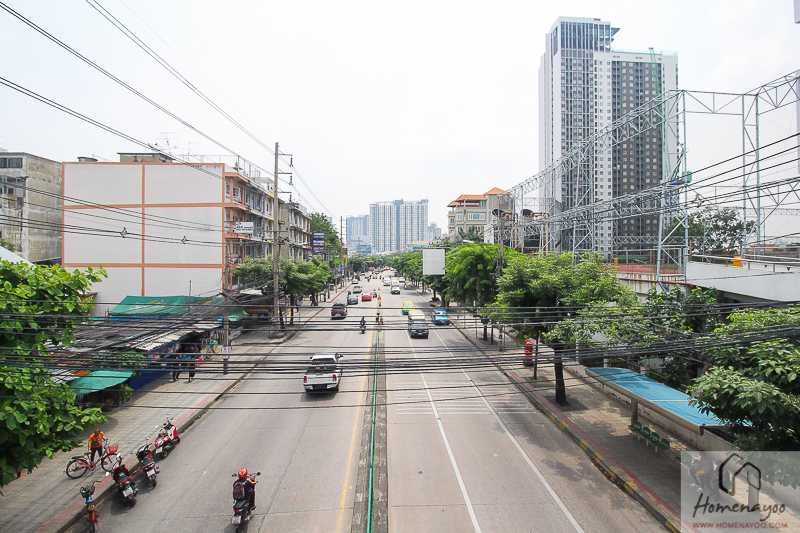 ขึ้นมาบนสะพานลอย ซึ่งสะพานลอยนี้อยู่ห่างจากโครงการประมาณ 150 เมตรค่ะ มองไปทางตลาดศรีเขมา ฝั่งซ้ายมือคือโรงเรียนโยธินบูรณะ ตรงไปก็จะเป็นทางแยกบังคับเลี้ยวซ้าย เพื่อตรงสี่แยกประชาราษฎร์ ฝั่งตรงข้ามโค้งด้านหน้าทั้ง 2 ฝั่งมีเซเว่นอีเลฟเว่นค่ะ