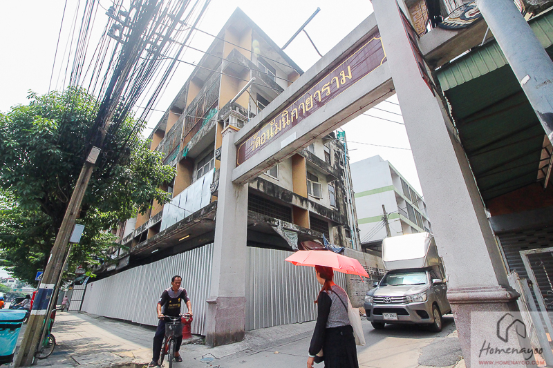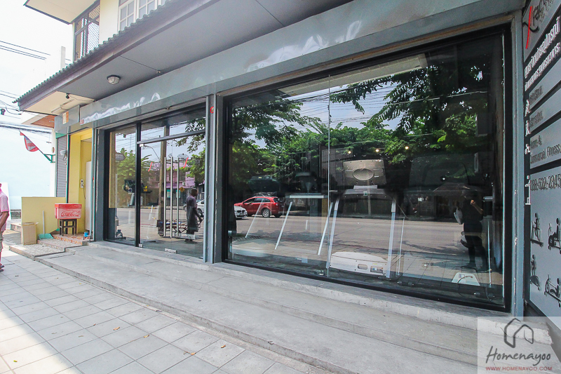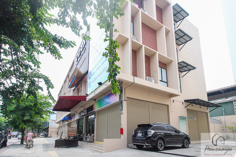 เรามาเดินดูรอบๆโครงการกันต่อ เริ่มจากหน้าโครงการฝั่งซ้ายมือ เป็นอาคารพาณิชย์ สูง 3.5 ชั้น เปิดเป็นร้านขายประตู วัสดุไม้ต่างๆ