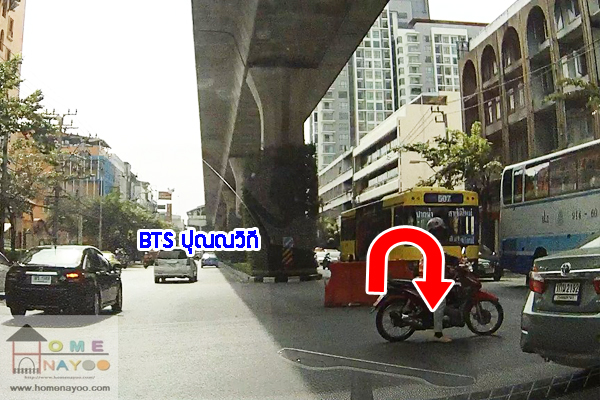 จะมีที่กลับก่อนถึง BTS ปุณณวิถี ค่ะ พอกลับรถมาแล้วให้ขับตรงไปอีกประมาณ 200 เมตร ชิดซ้ายเลี้ยวเข้าซอย สุขุมวิท 62/1 ค่ะ สังเกตปั๊ม ปตท. ไว้ค่ะ