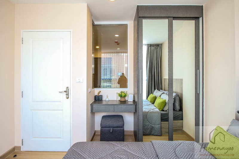 ข้างเตียงนอนได้เฟอร์นิเจอร์ครบชุดทั้งโต๊ะเครื่องแป้ง และ ตู้เสื้อผ้าแบบบานเลื่อน