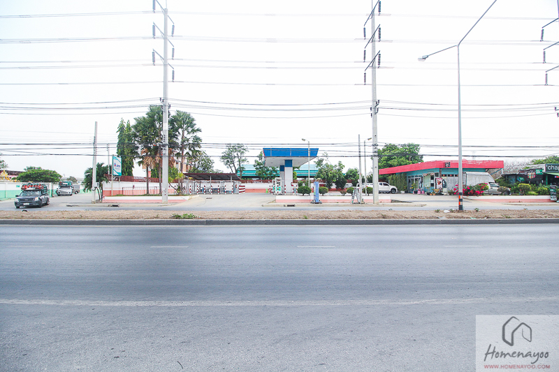 เรามาลองเดินดูบรรยาากศใกล้ๆโครงการกันค่ะ เริ่มจากหน้าโครงการ ติดถนนบางกรวย – ไทรน้อย ฝั่งตรงข้ามเป็นปั๊มแก๊ส LPG