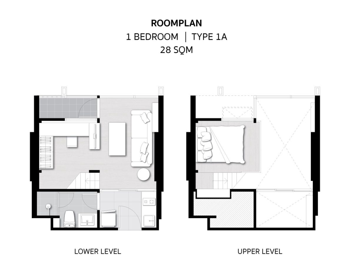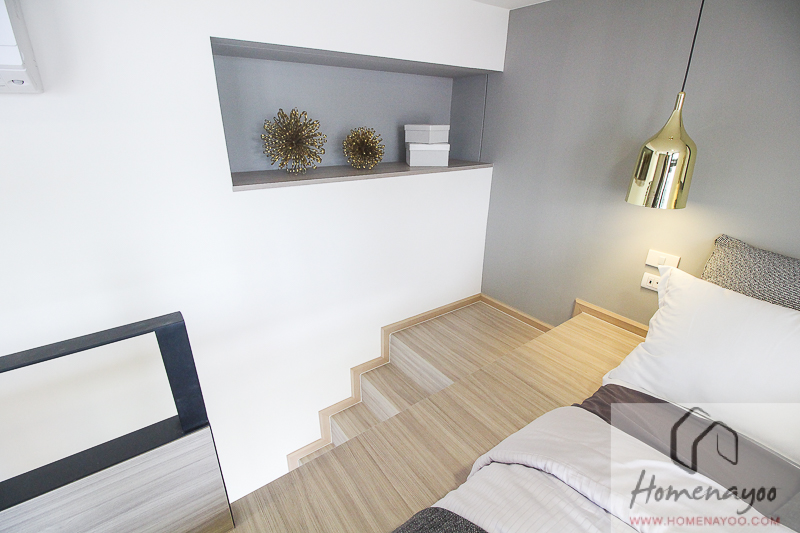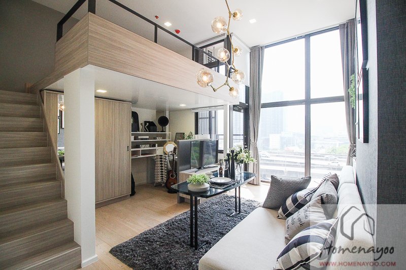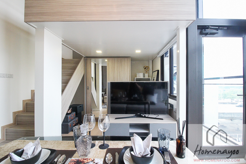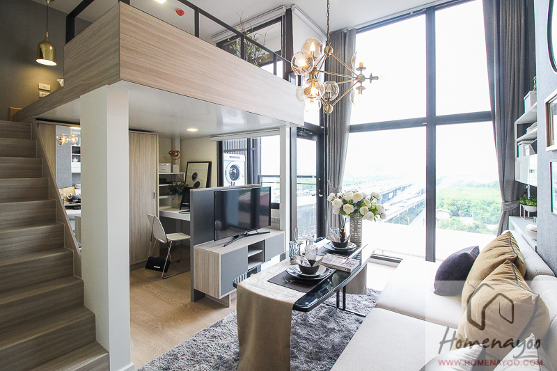 สำหรับแบบห้องในโครงการจะมีแบบเดียวคือ 1 Bedroom Loft Duplex ขนาด 28 – 34 ตร.ม. ซึ่งการออกแบบแปลนห้องนั้นเป็นจุดเด่นของโครงการอีกหนึ่งอย่าง เพราะทำออกมาได้ดี แถมยังได้ห้องแบบ Fully Furnished ครบพร้อมอยู่ และวัสดุที่ได้มีคุณภาพดี และช่องแสงบานใหญ่ความสูงจากพื้นถึงฝ้าในห้องนั่งเล่น