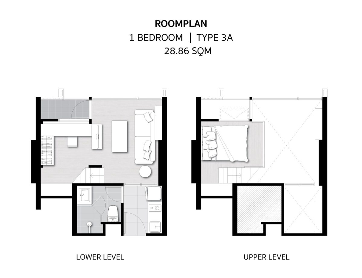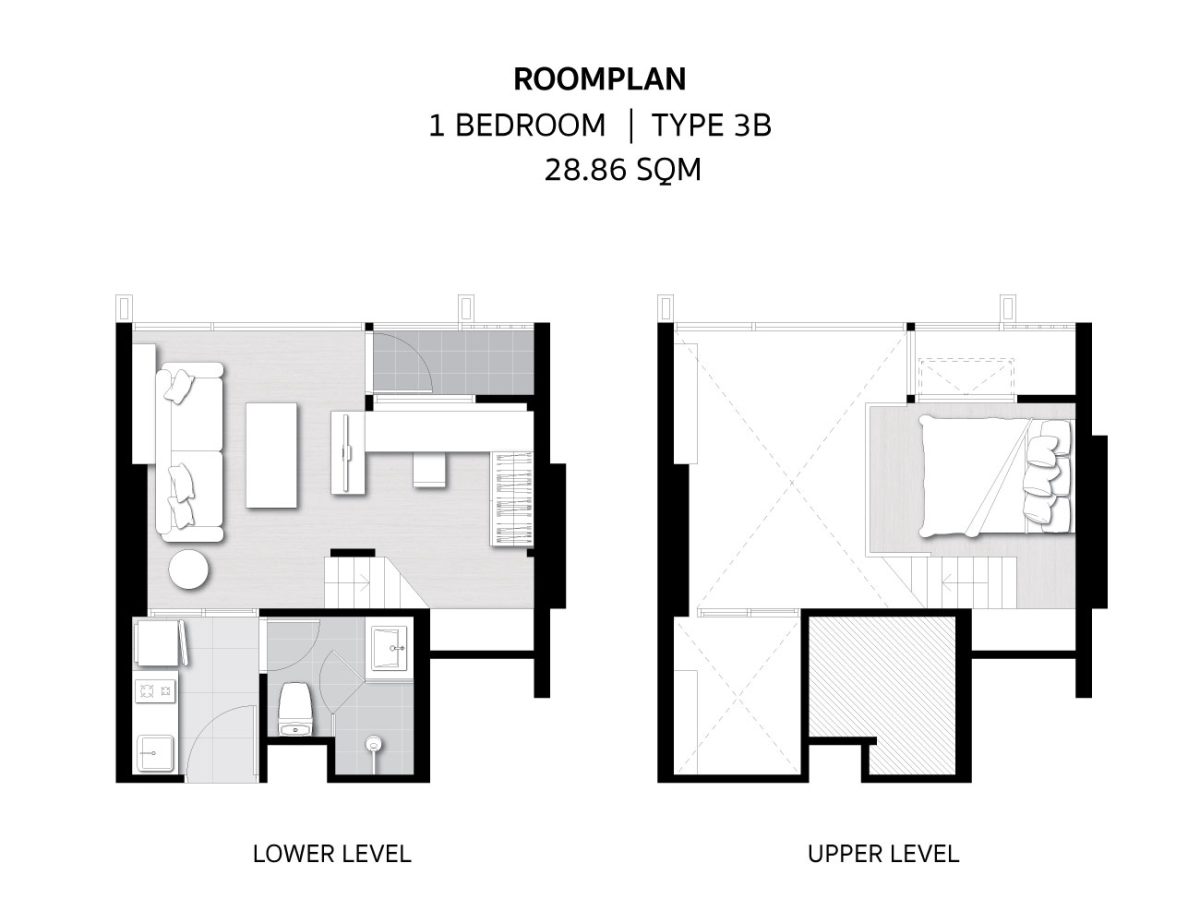 ลักษณะห้องและขนาดห้อง 1 Bedroom : Loft Duplex
