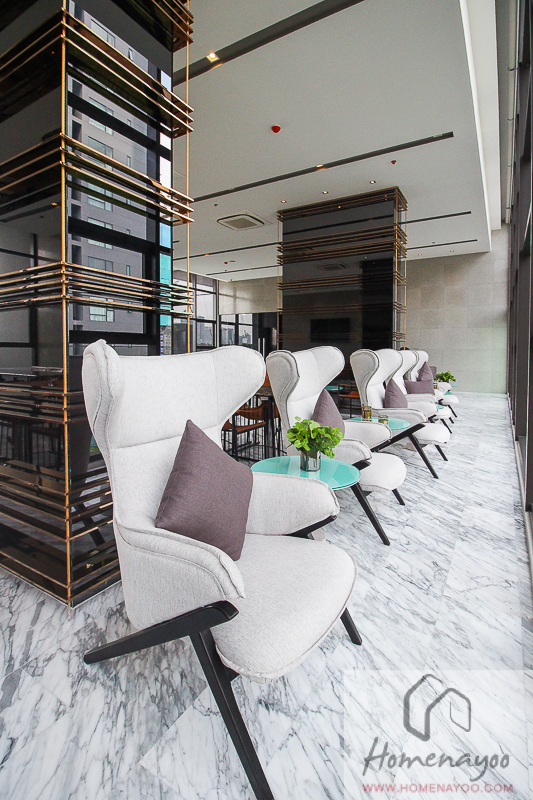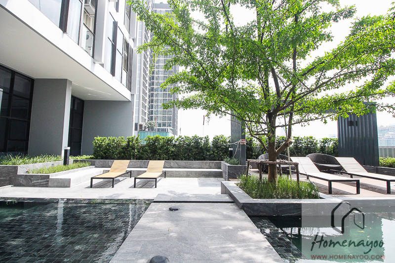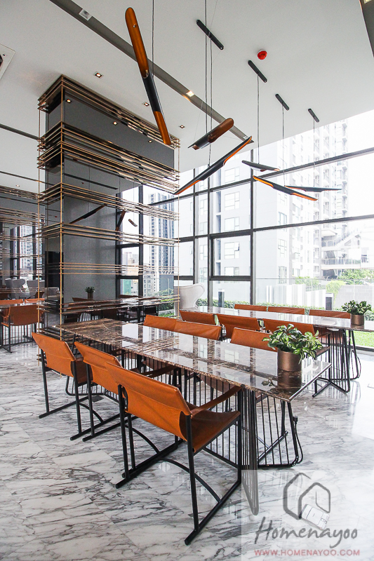 สิ่งอำนวยความสะดวก : ได้มาครบครัน รองรับการใช้งาน 315 ยูนิตแบบสบายๆ โดยจะมี Lobby และ Mail Room, สระว่ายน้ำระบบเกลือ ขนาด 4.70 x 17.38 ม. ลึก 1.20 ม. และ สระเด็ก 4.55 x 4.95 ม. ลึก 60 ซม. ข้างสระมี Pavillion เป็น Pool Terrace, ห้อง Chilling Area เป็นห้องโถงพักผ่อนขนาดใหญ่ มี โต๊ะพูลและ Pantry ให้ใช้บริการ, ห้อง Co – Working Lounge, Fitness แยกห้อง Boxing Room , Kids Stadium, Laundry, ห้องน้ำ + Steam & Sauna, ชั้น Rooftop มีโถงพักผ่อน Sunset Lounge, BBQ Terrace และสวนหย่อมด้านนอก