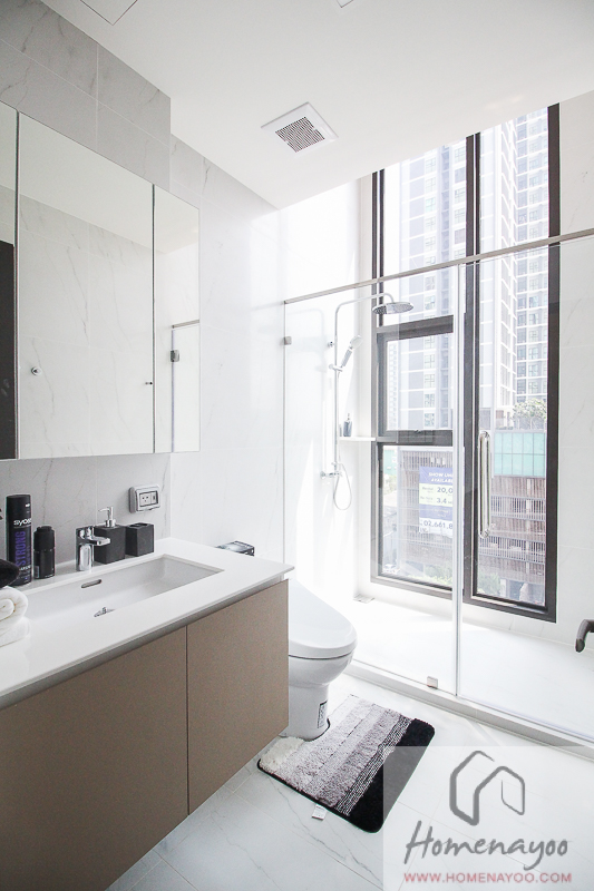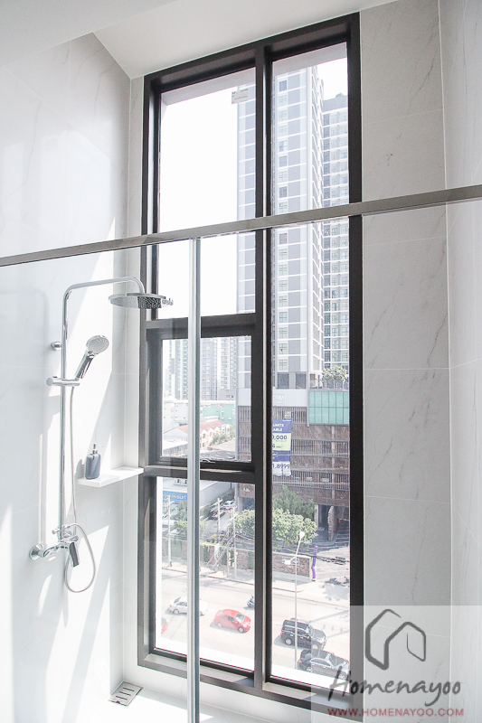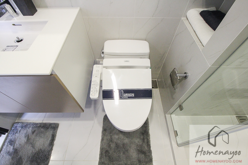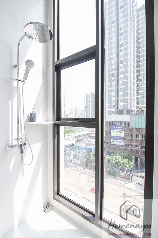 ภายในห้องอาบน้ำติดตั้งฝักบัวแบบ Rain Shower และ Hand Shower มาให้ พร้อมระบบน้ำร้อนในตัว