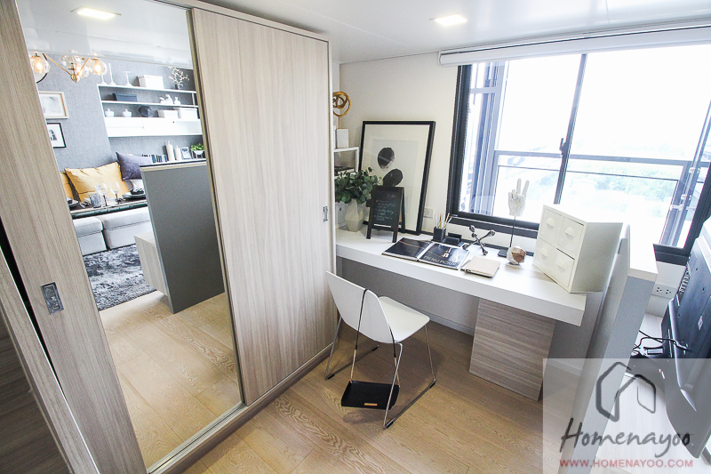 ถัดมาเราเข้ามาดูในส่วนห้องนั่งเล่น, ห้องทำงาน, Walk – in Closet และระเบียงกันต่อ ซึ่งโดยรวมๆก็จะเหมือนห้องที่แล้วเลยค่ะ เพียงแต่ได้ขนาดห้องที่กว้างขึ้นและเฟอร์นิเจอร์ที่มีขนาดใหญ่ขึ้นตามขนาดพื้นที่ใช้สอยในห้อง